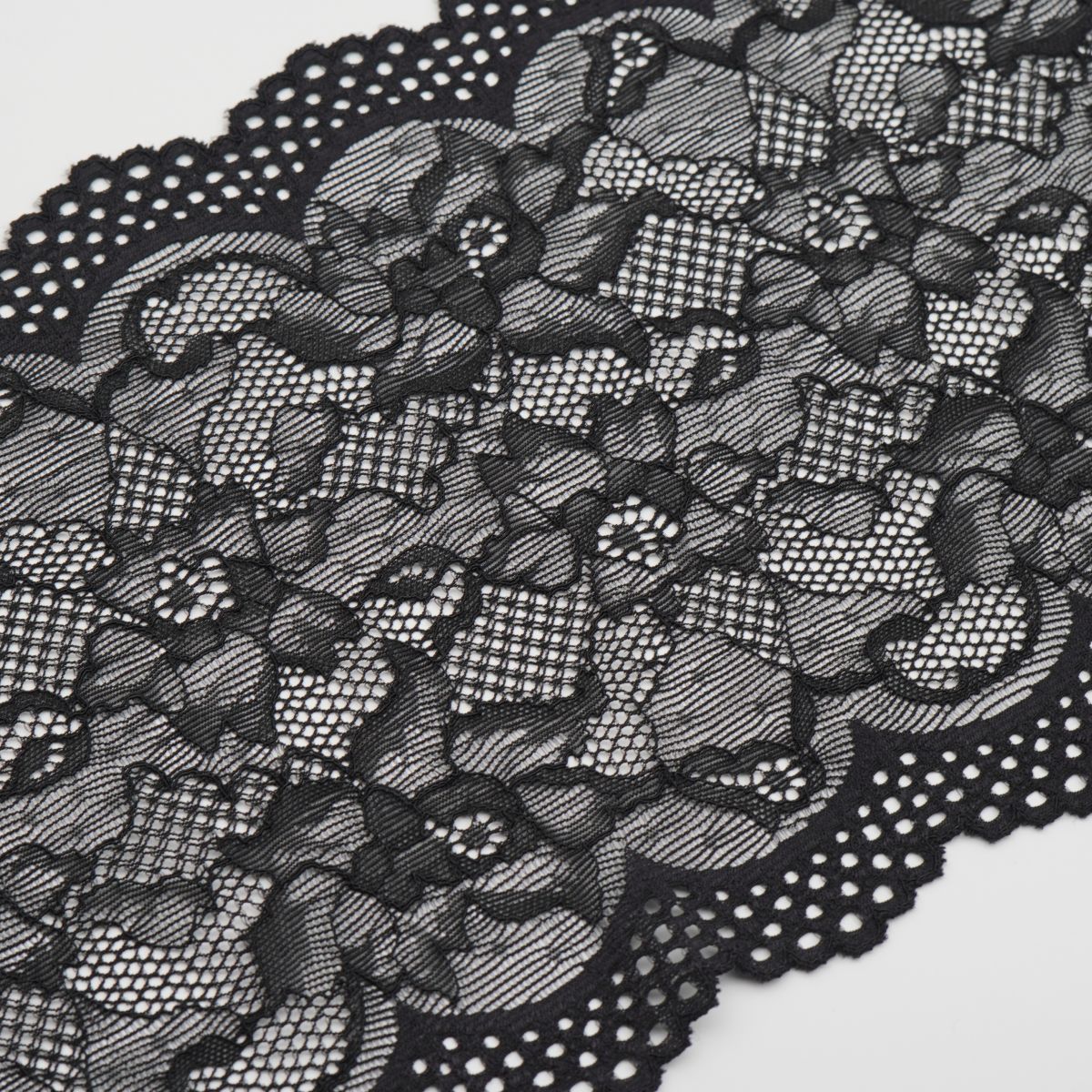 Мереживо еластичне шир.17.5 см чорний K254