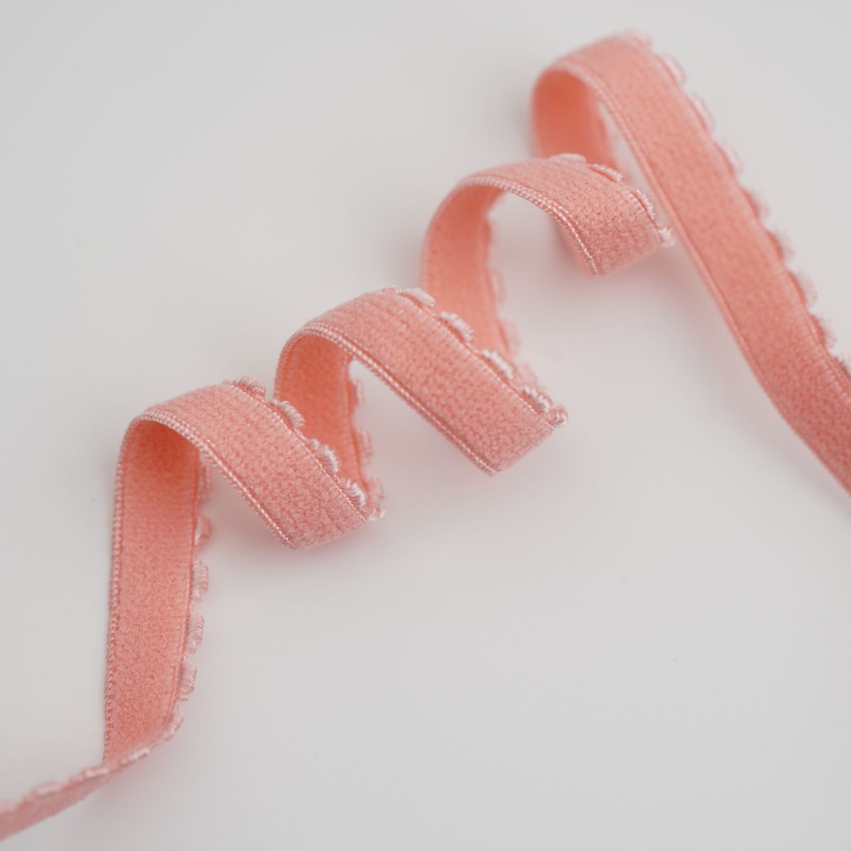 Обробна м’яка резинка, пружна, добре тягнеться; не туга і не занадто пухка,навпаки пластична і ніжна. Її можна використовувати для бюстгальтерів стандартних розмірів і трусиків. Зубчастий край (зубчасті декоративні фестони). Ворсова з обох сторін. Тримає форму, не створюючи ефекту “здавлювання” в виробі. Довго зберігає властивості в поцесі носки.